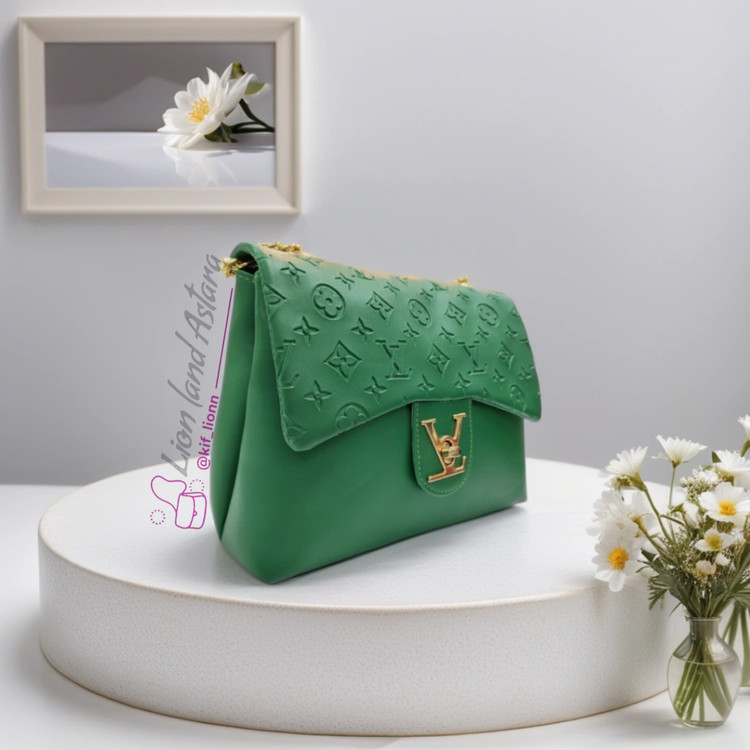 کیف زنانه دوشی برند Lv سبز و طوسی