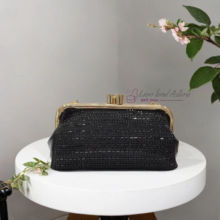 کیف مجلسی نگینی زنانه مشکی نقره ای وارداتی
