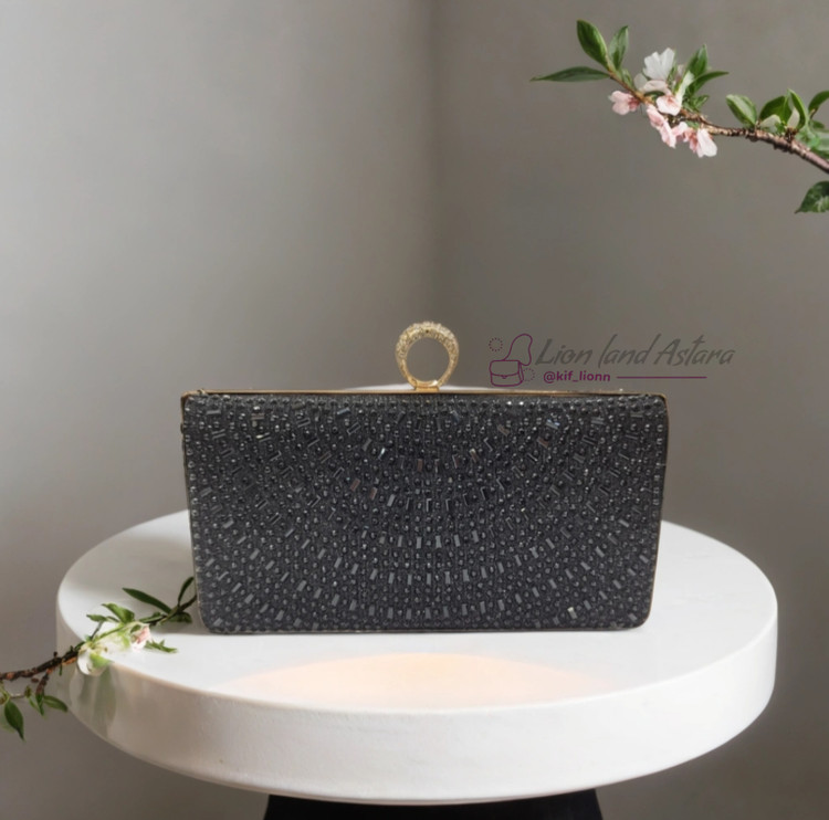 کیف مجلسی زنانه دستی نگین دار وارداتی مشکی
