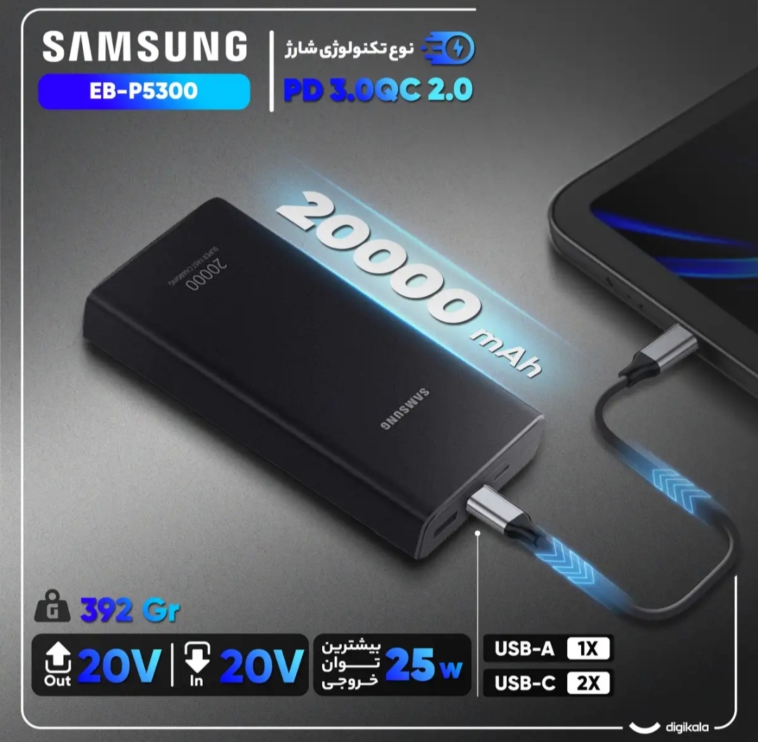 مشخصات فنی شدت جریان خروجی : در حالت شارژ سریع : 1.25 آمپر (20 ولت)، 1.66 آمپر (15 ولت)، 2.1 آمپر (12 ولت)، 2.77 آمپر (9 ولت) درحالت PPS : شدت جریان 3 آمپر (3.3-5.9 ولت) و یا 2.25 آمر (3.3-11 ولت)، در حالت شارژ معمولی : 5 آمپر / شدت جریان ورودی : در حالت شارژ سریع : 1.25 آمپر (20 ولت)، 1.66 آمپر (15 ولت)، 2.1 آمپر (12 ولت)، 2.77 آمپر (9 ولت)، در حالت شارژ معمولی : 3 آمپر